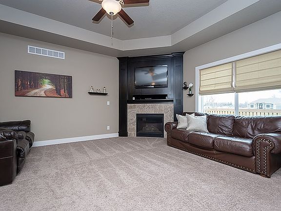 This walkout ranch is much bigger than it looks from the outside. Walk into the open living room that has soaring nine-foot ceilings (throughout the main level) and large windows that provide a lot of natural light. Granite countertops and stainless steel appliances (all stay) adorn the kitchen with a dining area that has room for a large table. One end of the house hosts two large bedrooms with full closets and a full bathroom between them. On the other side of the house are a huge master bedroom, ¾ bath with oversized walk-in shower, tall dual vanity, and full walk-in closet. House is complete with a fully finished basement. Includes a wet bar, large bedroom, 3/4 bath, workout room, and lots of storage. Mini-fridge and the bar with bar stools are negotiable. Deck and patio overlook a beautiful pond with a walking path.