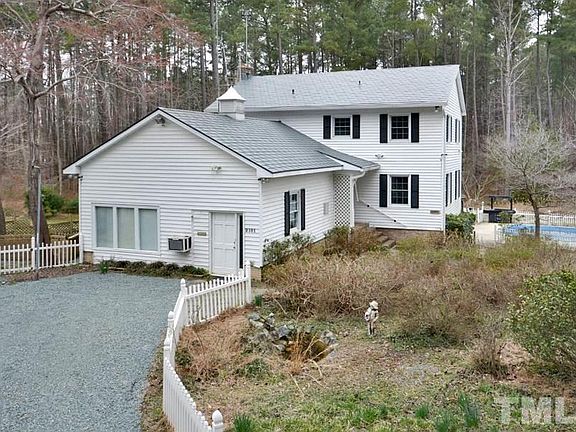 Your own personal oasis! Pool, pond, privacy - Perfect! This intriguing house features 3 bedrooms upstairs and a man-cave/she-shed on the main level. Flex room for hobbies, crafts, etc. Full basement with 1/2 bath! HUGE detached building (wired & 1/2 bath) for workshop, etc. Whole-house generator, sauna, 2 woodstoves also provide great warmth, tankless water heater, smooth ceilings, crown and chair molding, brand-new carpet upstairs, new paint throughout. Quick drive to UNC.