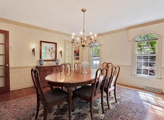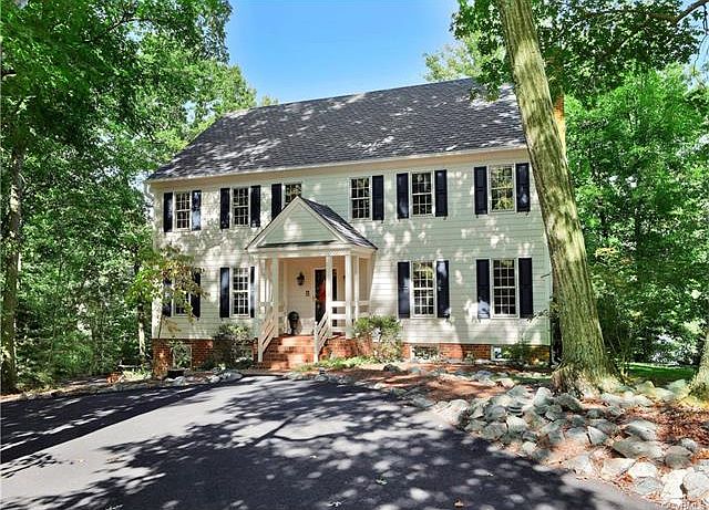 Lake Salisbury home with absolutely beautiful views of the Lake! This classic colonial home has five bedrooms, three full and one half bath! Two fireplaces and large formal rooms. The spectacular sunroom overlooking the lake was added in 1994 (previously a screened porch).The breakfast eating area is part of the sunroom which allows you to enjoy breakfast as the sun rises. The family room is spacious with built in bookcases and woodburning brick fireplace (gas lines are available). Hardwood floors throughout the first level. The family room is open to the sunroom and has windows facing the lake. On the second level, four bedrooms with two full baths. Hardwood floors under the carpet on the second level. The lower level is a huge bonus~with a full bath, fireplace with woodburning insert, separate office area and access to the one car garage. The basement can be a rec room and a 5th bedroom. It is a daylight basement. The 'GAF' roof was new in 2015 and even the gazebo has a new roof! Hardiplank was added in 2012! The electric stove in the kitchen was new in 2015. The cabinets are cherry. This home is a hidden treasure in Salisbury. A true vacation home in Midlothian!