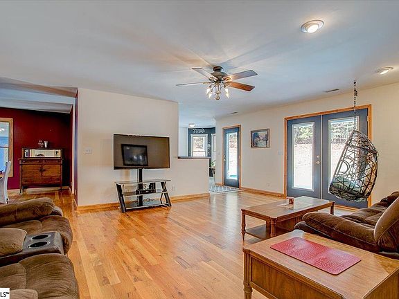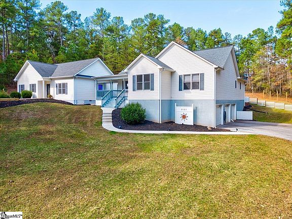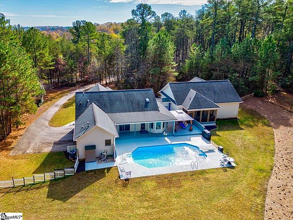 This home is truly one of a kind! You enter the main house from the wrap around front porch. The open floor plan includes a formal Dining Room on the front of the house with the Kitchen and Den overlooking the beautiful backyard and pool. The main house also includes a Master Suite with walk-in closet, jetted tub and separate shower, a walk-in Laundry Room with cabinets and counter space and two secondary bedrooms with spacious closets. The detached living quarters would be great for an In-Law Suite, long or short-term rental or visiting guests. The second living quarters includes a spacious entertaining space with vaulted ceilings, second Master Suite with trey ceilings and private bathroom, a secondary bedroom with a bathroom that also connects to the Living Room, a full kitchen and screened porch along with extra wide doors. There is a separate driveway and parking for the second living quarters (it even has its own address which is included with the same Tax Map number). The basement level three-car attached garage has a “Bunker” room that would be great for a ping pong table/game room, musician or storage! The garage also includes a workshop style set up with cabinets and a counter and a second storage room that is plumbed with a sink and toilet. The whole basement level has 10” thick poured concrete walls, a post-less beam support set-up, which keeps the space open and free of posts, and a silent floor joist system. The in-ground pool is 16x32 with a diving board and the liner was installed in July of 2021. There is also an outdoor shower on the pool deck that has hot and cold water. Once you move past the large, flat and fenced yard there is plenty of additional acreage that is wooded with a walking trail that keeps the home very private. The home also has two road frontages, one on Old Mill and the other on Syracuse. Located in Wren School District and close proximity to I-85, shopping and dining on 123 and 153, Southern Oaks Golf Course, Powdersville YMCA and much more! Don’t miss out on this unique opportunity!
