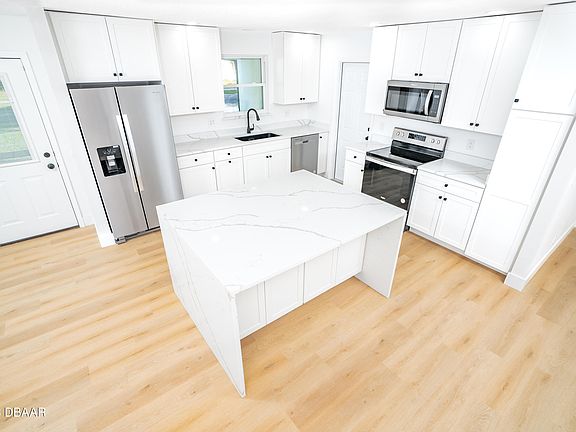 Stunning renovated home awaits you! This 3 bedroom, 2 bathroom, 2 car oversized garage home has been completely remodeled inside and out. This beautiful property features two living rooms, an open concept great room that includes the kitchen, dining, and family room areas. The kitchen is a chef's dream, with new Whirlpool appliances, quartz countertops with a waterfall quartz island, new cabinets with soft close drawers, a granite sink, black fixtures, and new lighting including recessed lights in the dining room, living room, and family room. The family room is complete with a wood burning fireplace with shiplap and an upgraded quartz mantle. Both bathrooms are fully remodeled with new vanities, new mirrors, new lights, new tub in the guest bathroom, new shower tile in both, and new black matte fixtures. The inside of the home has new waterproof vinyl plank flooring throughout, new fans with light kits, new drywall from the ceiling down, new wall texture, new paint, new doors, new door hardware, new closet doors, and new quartz window sills. Outside, the property features new front stucco, new exterior shutters, new paint, new landscaping, freshly painted front porch and back patio, and the sellers are installing a new 6ft. vinyl privacy fence at their cost! The newer roof provides peace of mind. This oversized extended 2 car garage garage has new epoxy flooring. There is a newer freshly painted backyard storage shed which provides ample storage space for all your belongings along with a new white vinyl fenced-in yard. Established neighborhood walking distance to a park. This home will not last long, schedule your showing today!