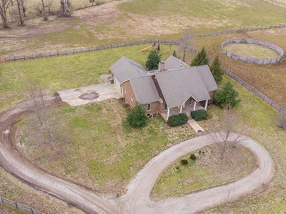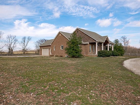 Photos just can't do this one-of-a-kind home sitting in the heart of the Bluegrass justice. 4 bedroom brick ranch designed for single-story living on a fully-finished basement & sitting on 15 acres. Home boasts a large Great Room with brand new carpet and a beautiful stone fireplace. Lots of options for entertaining and enjoying company, from meals in the formal dining room to relaxing in the sun room. Kitchen was truly built for a chef with top of the line stainless appliances, including a gas range, tons of counter work space, & gorgeous cabinetry. Large master suite features walk-in closet w/ custom built-ins & a private, ensuite bathroom w/ a separate garden tub & walk-in shower. Two additional 1st floor bedrooms are generously-sized. Finished basement is HUGE & ready for your imagination! Basement also has storage space. House sits on some of the most beautiful land in Kentucky with a 3 paddocks and 60' round pen. Enjoy country charm with modern amenities, just 3 miles from town!
