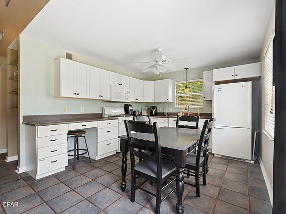 That is great opportunity to buy an investing or a vacation beach house under $360K, home has 3 BR, 2 BA. It is close to the pretty white sand of Panama City Beach, AND NO HOA ! Near Navy Base, local restaurants, and grocery stores. The home has a long driveway for ample parking and is situated on a large lot with room to spread out in the backyard. Step inside and you'll find vaulted ceilings within the main living space. The living room has comfy seating and flows into the kitchen with all appliances, kitchenware and table with chairs. This is a turnkey type of property. There is a main bedroom on the first floor with a beautifully remodeled bathroom including a tumbled stone walking shower. Upstairs is a flex space for working from home, two additional bedrooms and shared hall bath with tub/shower combination.