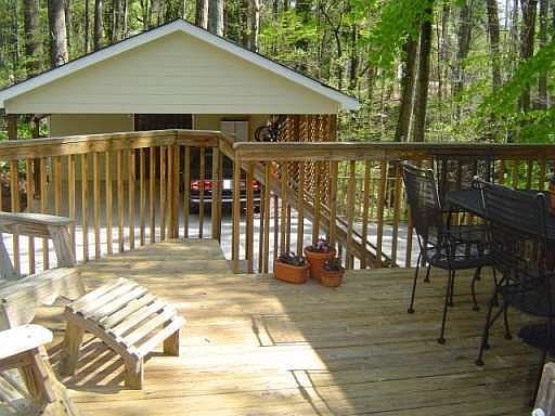 Beautiful total renovation w/ addition! New wiring, plumbing, windows, HVAC, roof & more! Gourmet kitchen w/ stainless, granite & pantry. 4 large bedrooms. Master w/ dbl vanity, sep Jacuzzi tub/shower, walkin closet. Bedroom w/ ext entrance ideal for home office. Lg den w/ fireplace. Tons of storage, open fl plan, hardwood on main, tile baths, 2 car carport w/ attic, extra parking. Private wooded lot, lanscaped, above street. Great neighborhood, walk to swim/tennis & local schools, inside I285!
