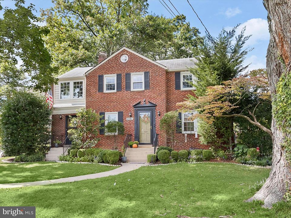 Stately brick front, Expanded four bedroom, two full, one half bath Colonial, sited on a lovely tranquil corner lot, with 3 car driveway, concrete walkway, and rear patio for grilling, tanning and entertaining. Significant addition completed in 2009, adding a large primary bedroom suite with a cathedral ceiling, brilliant hardwood flooring, framed by oversized windows, a colossal walk in closet and convenient , practical , sun drenched home office with ceramic tile floor and brick interior accent wall, which was the exterior wall from the existing house, prior to the addition. Within the last 5 yrs, the current owners completed a full remodel of the kitchen, powder room, upper level full hallway bathroom, walk through closet in primary bedroom, installed a new closet in the front bedroom and installed new blinds throughout the home. As you enter the home, to the right, you enter a dining room/ kitchen combo area with a large dining area and recently ( August 2019) fully remodeled kitchen boasting elongated tile flooring, granite countertops, farmers sink, all new appliances, elegant pendant lighting , oven range, built in microwave, dishwasher, and refrigerator with ice-maker. The cozy living room features a natural gas fireplace with mantel, eight LED recessed lights and hardwood flooring. The living room transitions to the Anderson Window lined sunroom through French doors. The sunroom also features a generous amount of recessed lighting and a rear door to the rear yard. Adjacent to the living room is a quaint library/study with built in shelving , hardwood flooring and a convenient entrance door to the front left side of the property. The ascending staircase escorts you to the upper level featuring a guest bedroom with hardwood flooring, ceiling fan , and walk in closet. The remodeled full hallway bath offers a soaking tub/shower combo, vanity and exhaust fan. Two additional bedrooms with hardwood flooring and the previously mentioned expanded addition round out the upper level. The wall between the middle bedroom and the primary bedroom is a non load bearing wall, which can easily be removed for a conversion of that middle bedroom into an additional full bathroom on the upper level. The descending staircase with three walled light sconces, ushers you to the finished lower level family/game room with berber carpet and windows which can offer multi-purpose functionality to the new owners. An exit door leads to a walk up staircase offering a private alternate access for guests or a multi-generational living opportunity as there is a full bathroom opposite the finished living space. A large utility/storage area with built in closets and shelving , washer, dryer, utility sink, sump pump and recently serviced ( 4 months ago) Gas Furnace and gas hot water heater, complete the lower level. Located a few blocks away from the Metro Station and plentiful retail shopping, this charming home wont last. Come join us at one of our open houses scheduled for Saturday 9/30 and Sunday 10/1 from 1-3pm.