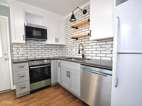 Renovated duplex in Midwood! New kitchen with honed quartz countertops, new range, microwave and dishwasher. Kitchen also features new LG washer and dryer with butcher block counter for extra space. Refinished Hardwood floors throughout except bath. Bathroom has new vanity and tile floor. Living room and bedrooms are average size. Please read the rest of this description with instructions on setting appointments to view. No formal dining. No private yard as city is currently doing work to the creek next door. Dogs are allowed with interview and vet records. Pet deposit required. Additional rent per pet based on pet interview. All occupants required to fill out rental application. If you are really interested in this apartment and sending an in App message PLEASE include a note about what you are looking for in a rental and available times to tour. Just hitting the button will not be responded to. Call or text with interest.Too many people hit the button and never respond. This unit can be toured with appointment! Do not fall for SCAMS. Tenant pays own electric power, cable, water and gas. Garbage included with rent. No smoking. Please KNOW: Parking is limited and on right of front yard. More than one car for any length of time could prove to be difficult and may cause complaints from other alley users. Proof of Covid Vaccine required. Responsible Pet Owners welcome. Pet interview required. City is doing work to creek next door which includes work to road and access to this yard. This is right next to the back door. If this will bother you please do not apply. If hitting the interest button PLEASE INCLUDE A NOTE about what you are looking for in an apartment and available times to tour.We will not respond to people that just hit the button. Do not fall for scams. This unit can be toured with in town owner.