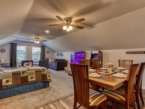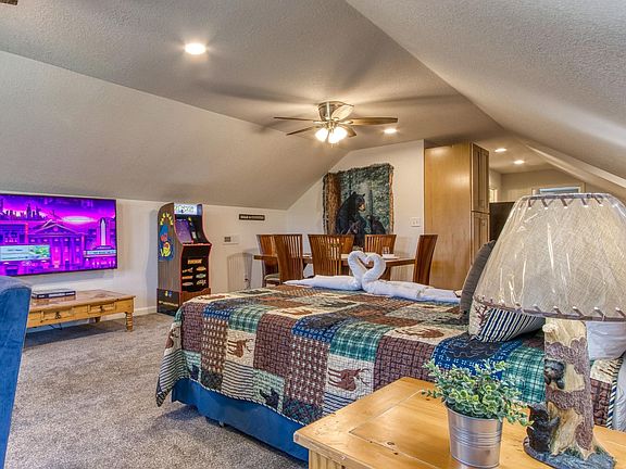 Welcome to your dream 2-bedroom, 2-bathroom attic apartment nestled in the breathtaking Smoky Mountains. This recently built haven offers a unique and inviting atmosphere, where rustic charm meets modern comfort. As you step inside, you'll immediately notice the attention to detail and the captivating bears theme that adds a touch of whimsy to the space.