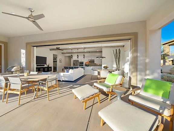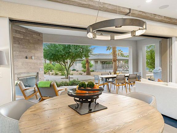 Welcome home to The Retreat at Desert Willow! This light & bright, furnished, 3 bed, 3 bath home is in a premium location just steps to the resort style pool, spa, fire pits, & barbecues where your family & friends can enjoy the desert lifestyle. Alternatively, relaxing on your private patio while grilling, enjoying a libation, & enjoying the southern views is a great option. Amenities include cable TV, Wi-Fi, a lap pool, a fitness center, & a game room with billiards, table tennis, & card tables. Access to the Desert Willow Golf Center is included, as well as the Palm Desert Golf Academy. The entrance to the home features stacked stone with a contemporary desert feel. You'll enter your private courtyard with a fireplace for chilly winter evenings. Inside you'll find all the finest finishes in a clean, modern, open floor plan. Designed with tasteful colors, there are warm exposed beams, wood accents, stone countertops, stainless appliances, & designer lighting throughout. The exquisite primary bedroom & bath are spacious & contribute to the overall Zen feeling of the home. The guest room is luxurious, & just the right size. The Den has been converted to a third bedroom with a barn door for privacy. The wow factor continues when you open your pocket doors from the great room to the impressive patio with a fireplace & generous seating areas for al fresco dining. This is truly the best of desert living! Close to shopping, dining, biking, world-class golf, tennis, & pickleball.