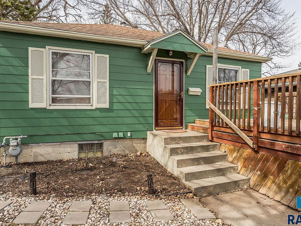 This one is a looker! In the heart of Sioux Falls sits this cute three bedroom ranch home. As you enter the home you find beautiful hardwood floors in the living room. Entering into the kitchen you find an open usable layout that hosts stainless steel appliances. Off of the kitchen you can enter the large main bedroom, walk down the hall to the other bedroom and full bath, take the stairs to the basement, or exit to the backyard/driveway. If you take the stairs, you will see that the laundry area is located right near the stairs for convenience and there is plenty of storage. The wood accents make the basement feel warm & inviting. There is a 3/4 bath just before entering into the family room. After passing through the family room you can enter the large bedroom or take the door to the attached garage. Some updates include exterior paint, furnace, A/C, & water heater.