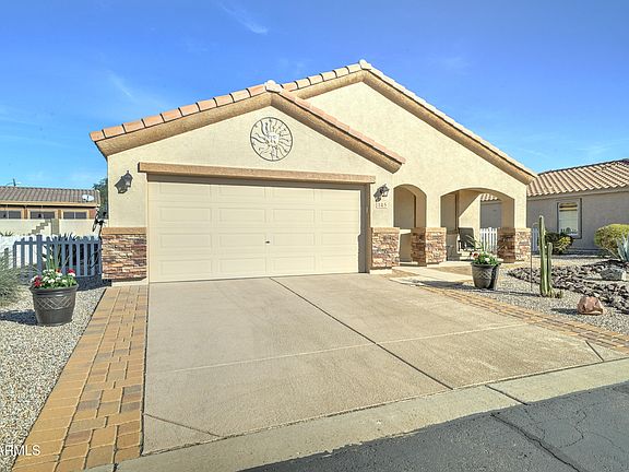 Welcome to the highly desirable community of Meridian Manor! This great home features one of the most desired floor plans in the community! It has large bedrooms with a Den/Office (that could be 3rd bedroom) just off the entry. The Open living area is roomy and bright. The kitchen is well laid out with lots of cabinetry and pantry, subway tile backsplash and switched under cabinet lighting. Interior has tile floors throughout. Patio faces north for shade year round. Come see what has made Meridian Manor the choice in the East Valley for 55 plus living! Great clubhouse with library, fitness center, 6 billiard tables, craft room and Ballroom. Pickleball, shuffleboard and heated salt-water treated pool and Jacuzzi have a spectacular view of the Superstition Mountains! You'll love it here!