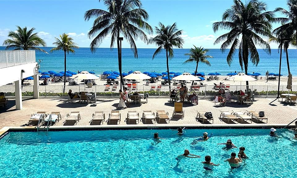 Experience the epitome of coastal resort style living in this spacious 2-bed, 2-bath corner condo, spanning an impressive 1,500 square feet of living space complete with hurricane impact windows for your peace of mind. Nestled directly on the Hollywood Beach, this apartment is a part of the Quadomain complex, a 40-year recertified building known for its superior amenities and prime location. The building's amenities enhance your lifestyle featuring beach service, free fitness classes, 24/7 security, valet parking, 2 resort style pools, dual gym facilities, sauna, game room, a business center and the convenience of an onsite restaurant. The complex is within walking distance from the vibrant Hollywood Broadwalk The Quadomain complex is within walking distance from the vibrant Hollywood Broadwalk, 20 min drive to the Fort Lauderdale airport and close to the Aventura Mall. This property perfectly balances the tranquility of serene beachfront living with the vibrancy of nearby dining, entertainment and shopping hotspots. Whether you're searching for a peaceful coastal sanctuary or an active, upscale lifestyle, this beachfront condo is your gateway to a dream living experience that encapsulates the best of both worlds.