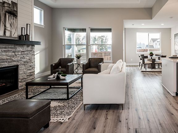 Classic architectural features and a master on the main layout are hallmarks of the stunning Nisqually plan. At 2,272 square feet with three to four bedrooms and two and a half baths, this contemporary two-story floor home lives large and caters to today's lifestyles.Enjoy immediate curb appeal with four lovely elevations from which to choose, each distinctive and full of character. A gracious covered front porch welcomes you home and makes for a comfortable perch to connect with neighbors and watch the kids play. Architectural window awnings, along with the covered porch, increase the home's energy efficiency and keep interiors cooler in the warmer months.The Nisqually opens to a dedicated entryway with a coat closet and powder room situated apart from the first-floor living areas. Interior detailing, including coffered ceilings, creates lovely character and a welcoming sense of arrival. Purposeful design elements throughout ensure no wasted space in this beautiful and inviting floor plan. A generously sized den just off the entryway expands common living areas benefitting families continuing to spend more time at home. With access to the great room beyond, transform the space into an extended lounge space, media room, home office, or kids' study room. Garage entry is also just off the light-filled hallway, with an optional three-car garage or shop available for even more storage and workspace.