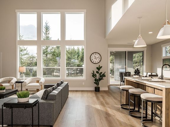 The Spruce home design brings to mind the mountain of the same name with its many gabled roofs, like peaks of a mountain. Yet as with all Pacific Lifestyle Homes, there are always options available, and for those who prefer an exterior with a lower profile, there are options for you, as well. This is a home full of choices and great design elements, helping you create your own ideal home. It features four to five bedrooms, 2.5 bathrooms, a three-car garage, and 3213 square feet of space.Imagine arriving home with lights glowing in the many windows across the front of the home, making it warm and welcoming. The front porch, with extensions depending on the exterior choice, invites you into the home where you are greeted with a spacious entry hallway. Off one side is the entrance to the living room/den, which can be used for a variety of purposes, either as a more formal gathering place, or even as a home office, or just a cozy reading room for bibliophiles. The choice is always yours. If you do choose to use it as a living room, the space can connect directly to the dining room, making the whole area ideal for entertaining. Among the options for these two rooms are double doors on the living room and a solid wall between the living room and dining room, enabling homeowners to use the space in a way that feels best.