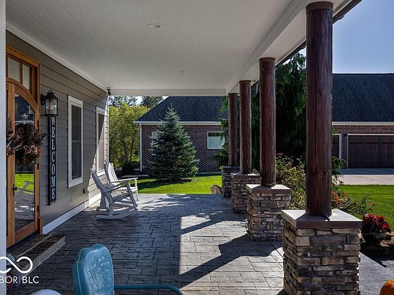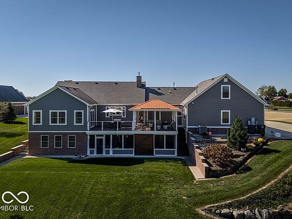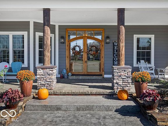 Amazing custom built home in New Palestine on 1+ acre combines top notch quality with comfort for practical living. PB has bath/jacuzzi tub, his/her vanities and his/her walk-in closets. The great room boasts a Jotul wood burning stove, and an 8x7 walk-in pantry for the gourmet kitchen. The laundry/craft room is a dream!! The sunroom has an amazing view of the back yard, you'll enjoy the frequent wildlife visits. The lower level has a walk-out basement with screened-in concrete patio and outdoor garage. The basement game room will be loved by all but could easily be converted to bedrooms 4 & 5 if desired. The downstairs has a laundry facility and kitchenette allowing the lower level to be used as in-law quarters or extended family living. There is a safe room/storm shelter accessible in the basement as well. In terms of construction, the home is spray foam insulated with foam under the basement floor. Reverse Osmosis system upstairs and down, alarm, and outside surveillance. Attached 3 car heated garage has an above-unfinished bonus room with plumbing & gas that will accommodate your storage needs. The home has gravity flow drains, 5 exterior water hydrants that make outdoor living/maintenance easy and enjoyable.