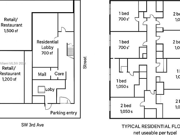 T6-8-O-URBAN CORE ZONE. You can build a mixed use high rise building of 8 floors. First floor for commercial retail or office. second and third floors for 33 parking spaces. 5 next floors for residences 5 units per floor.Amazing corner lot location to develop get income as you submit permits. Gross income $144,000. 40 year recertification was passed in 2022. Flat roof replaced in 2019. Very low liability insurance $4,000 a year. Building consist of 6 one bedrooms one bathroom of 700 Sf each rented at $2,000.