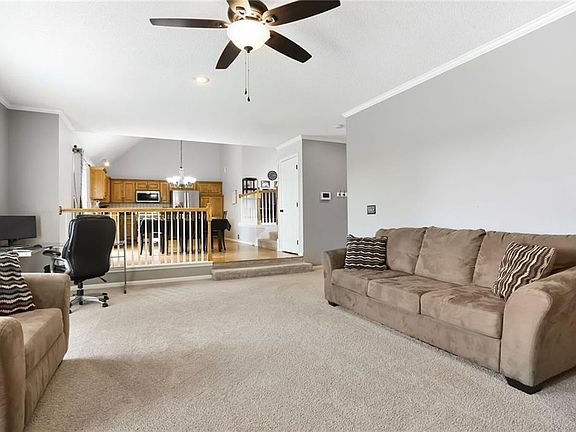 Sellers will provide a home warranty for the buyers and the home has been reduced over $5000. Seller says to bring your best offer. Lowest priced home with a 3 car garage in 64082 zip code. This is a great home in a great neighborhood. This stunning 4-bedroom, 2.1-bath two-story home nestled in the highly sought-after Eagle Creek neighborhood. Situated on a level lot that backs to serene green space, this home offers both privacy and picturesque views. The spacious 3-car garage features built-in storage, perfect for keeping everything organized. As you step inside, you’re greeted by a striking ceramic tile entryway that flows into a bright and open living room, complete with soaring ceilings and elegant plantation shutters. The heart of the home—the kitchen—boasts a functional island, pantry, and sleek stainless-steel appliances, all of which stay with the property. An adjacent dining area and expansive great room offer plenty of space for gatherings, along with a convenient half bath on the main level. Upstairs, the luxurious primary suite features a private bath with a relaxing whirlpool tub, separate shower, dual vanity, and a generous walk-in closet. Three additional bedrooms—most with walk-in closets—share a full hall bath, and a second-floor laundry room adds to the home’s practical layout. Enjoy the outdoors in the fully fenced backyard, featuring mature trees along the south fence line and a large patio, ideal for entertaining or simply relaxing. The home also includes a radon mitigation system and an unfinished lower level ready to be customized to your needs. Eagle Creek is more than just a neighborhood—it’s a community. Residents enjoy access to pools, walking trails, parks, and a variety of amenities that make this an ideal place to call home.