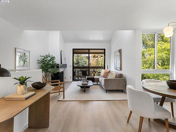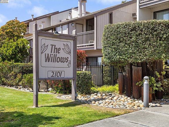Welcome to this beautifully updated 2-bedroom, 1.5-bath condo in the desirable Willows community in Alameda. With 1,060 sq ft of stylish, light-filled space and new luxury vinyl flooring throughout, this home blends comfort, function, and a prime location ideal for relaxed island living. Upstairs, the main living area features soaring vaulted ceilings, a cozy wood-burning fireplace, and west-facing views from the private balcony—perfect for soaking in sunsets, bird watching, and enjoying the peaceful natural surroundings. The functional kitchen offers stainless steel appliances and a seamless connection to the dining and living areas—ideal for entertaining or casual meals. A convenient half bath on this level adds everyday functionality. Downstairs, you'll find two bedrooms, including a spacious primary and a second bedroom that opens to a sunny private patio. The full bath has been beautifully remodeled with clean, modern finishes. In-unit laundry is conveniently located near the bedrooms. The Willows offers resort-style amenities: pool, hot tub, sauna, gym, clubhouse, and a tranquil courtyard filled with natural beauty. Near shoreline trails, parks, shopping, dining, and transit.