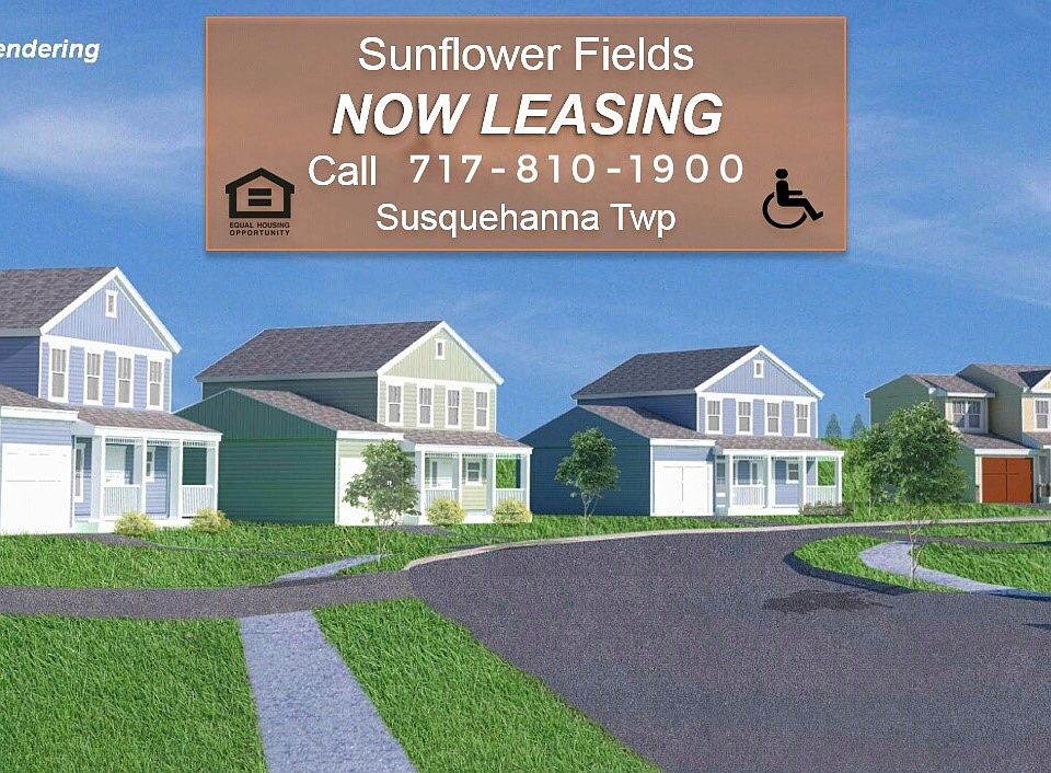 Sunflower Fields is an affordable housing community, currently under construction, located in Susquehanna Township, Dauphin County. 3 bedroom homes should be available in the beginning of April! 3 Bedroom homes are available for households with 3-6 persons. Each home has an attached one-car garage and homes will be equipped with a stove, refrigerator, dishwasher, and washer/dryer. Each home is also energy efficient and have an electric mini-split heating/air conditioning unit. Sunflower Fields will also have a community building with a computer room, open play area, and community gardens. All households residing at Sunflower Fields must meet income eligibility requirements, including minimum and maximum income limits at move in, as well as previous landlord, credit and criminal background screenings. Sunflower Fields does accept Housing Choice Vouchers administered by the Housing Authority. Rents are based on the unit size and the income limits for the area; NOT individual household income. Rents are affordable and below market rate. Visit http www.coblerrealtyadvisors.com/ for a printable application.