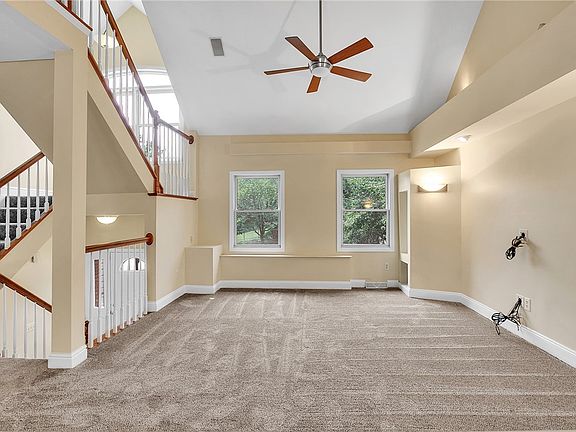 Your opportunity to join the coveted Toftrees Estates community has arrived! Perfected located in this tranquil neighborhood, less than 20 min from the heart of Pittsburgh, this sprawling 4 bedroom home will surprise and delight at every step! New Lush luxurious carpeting welcomes you warmly to the home and leads you to a massive open concept living room and entertaining space with 22 ft loft ceilings above, and deluxe bamboo flooring below all well lit by an abundance of natural light. A grand dining room awaits for holiday hosting with opulent tray ceilings adding class and character. A first floor master, with matching tray ceilings, sizeable ensuite bathroom with jacuzzi tub, and walk in closet elevates daily living. Your finished basement even offers a gas fireplace tying in the timeless sense of hearth and home while still accommodating recreation or relaxation. Same goes for your massive party deck overlooking custom waterfall rock formations! This home is excited for you!