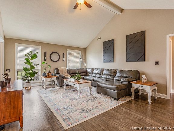 This pristine ranch is nestled on a generous .29-acre corner lot in the heart of Sellersburg. This impeccable ranch home welcomes you with its blend of modern sophistication and classic charm. The inviting foyer leads to a spacious living room, bathed in natural light, perfect for both relaxing and entertaining. Spanning 1,536 square feet of artfully updated living space, this residence showcases a vaulted ceiling in the living room, creating an atmosphere of airy openness. Experience the harmony of form and function with recent upgrades, including stylishly updated flooring. The well-maintained interior reflects a commitment to quality and comfort. Step outside to discover a large patio set against the backdrop of a beautiful lot, offering a serene outdoor retreat. The property's practical appeal is enhanced by a convenient 2-car attached garage, providing ample storage and parking solutions. With every detail thoughtfully considered, this property is ready to provide its next owner with a perfect blend of luxury and livability.