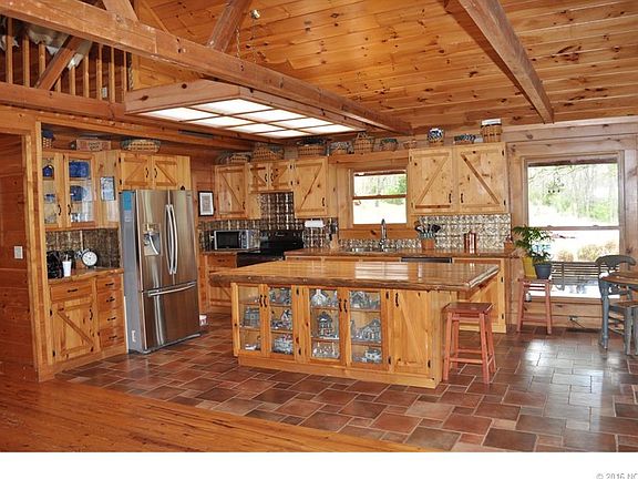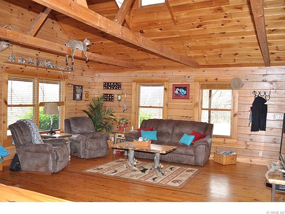 Finally live the dream! Custom Log Home nestled in the trees on 2 acres. This beautiful home has a porch that wraps around the entire perimeter, and overlooks the neighboring pond. Perfect for entertaining, this home has a very open plan. Lg 30x40 shop