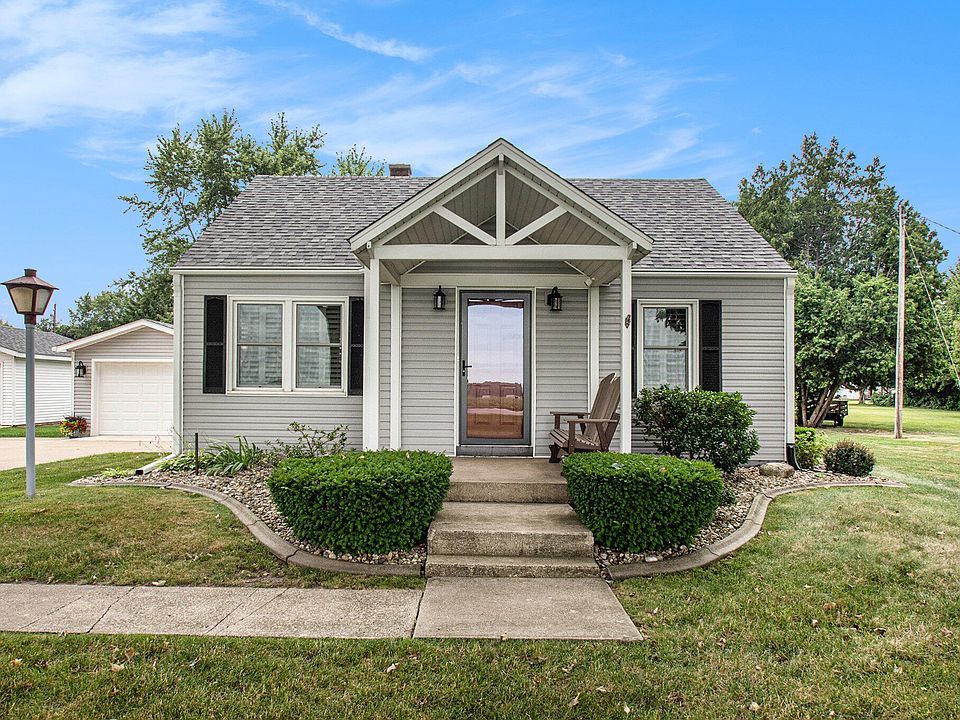 RURAL, WELL MAINTAINED, 1/2 ACRE! Located just outside the city limits this 3 bedroom ranch with a finished attic is what I consider perfect charm. Entire main floor has a fresh update, and a brand new bright white, full bath. Eat in kitchen area has a convenient built in desk area and updated built-in cooktop and wall oven. Newer windows with all white plantation shutters throughout make a great statement. Living room has all the natural lighting. Two bedrooms on the main floor; one is currently converted to a large, dreamy, laundry room. Upstairs is another bedroom with several built in storage areas adding character. Basement is partially finished with family room, office area, and also has plenty of room for storage. (even a new stand up shower installed) Outside is full of pure serenity with vast views of farmland. Detached extended garage, plus an additional 1 car garage with electric, and another large storage shed offer plenty of storage. Both inside and out have been meticulously maintained and show years of pride in ownership! Looking for a quick close, and most items in home will remain with the sale of the home.