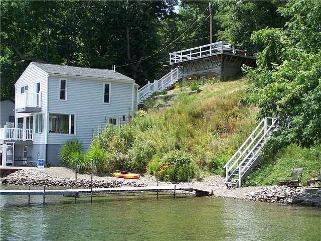 Delightful year round lake home on 130' lakefront with natural beach and seawall! Completely renovated throughout with new kitchen and appliances, flooring, bathrooms, decking and stairs, public water and sewer, gas fireplace - Just about perfect - near Keuka College! Immaculate condition!!! Move right in and enjoy!