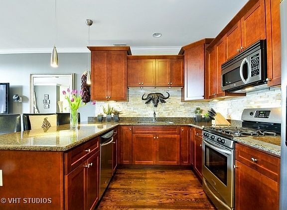 Penthouse in Roscoe Village with Private Roof Deck & pergola. Extra wide living room with front balcony. Gourmet kitchen with custom cabinets, granite & stainless appls. Natural stone baths, master with whirlpool & large separate shower. Hardwood floors with espresso finish, exquisite millwork & smart wired throughout. Attached garage with tandem spot included. Huge storage closet. Walk to Mariano''s & AUDUBON School