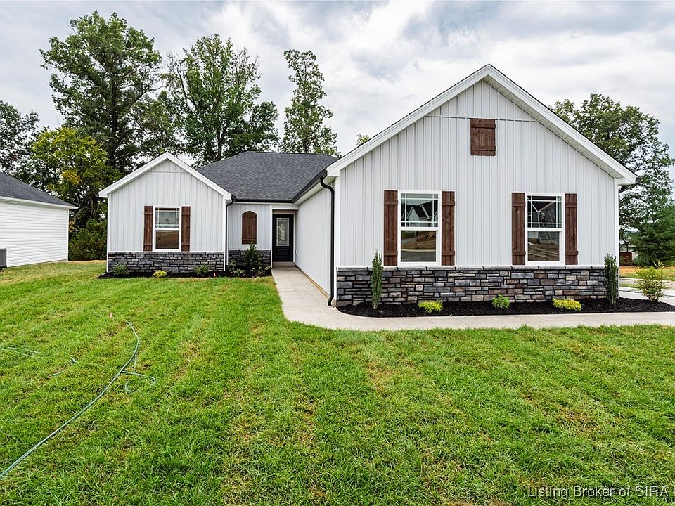 Introducing The "Emerson" Plan in ASB's newest development of FAIRVIEW FARM. This floor plan is becoming one of the most popular! As soon as you step inside, you will immediately notice the soaring 10 ft ceiling height in the expansive living room that offers LVP "life proof" flooring, recessed lighting, and flows right into the dining area and kitchen. The kitchen offers an abundance of cabinet and counter space, kitchen island and breakfast bar! All bedrooms are a great size, including the owners suite that offers a private ensuite bath with separated dual sink, two walkin closets, and separate shower. This new development is just minutes from the expressway, downtown Sellersburg, and the prestigious Covered Bridge Golf Course! Builder provides an RWC Warranty at closing and this home is ENERGY SMART RATED! If this home doesn't meet your needs, you might consider ASB's other developments at Hawthorn Glen or Kingsland Fields! You just can't beat what you get for the price!