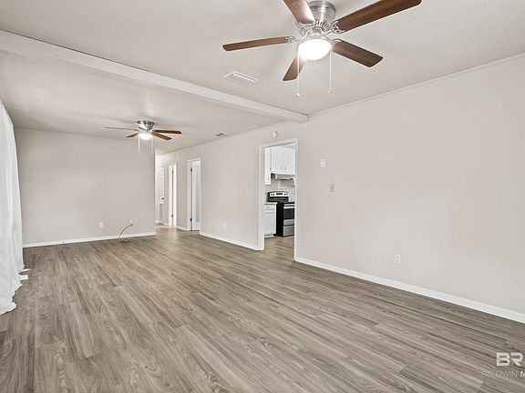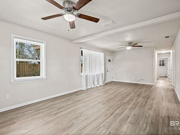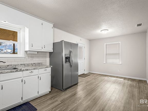 This nicely updated and budget friendly home in Robertsdale is a great home for an owner looking for privacy and tranquility or would make a perfect long term rental for the investor. The huge lot has recently been fenced in making it very private. The flooring has been replaced in the last several years with all new LVT. The full bath was just updated. All windows have recently been replaced. This home is turn-key ready and feels freshly updated as you walk in. There is also a new storage shed that conveys with power. Don't miss a great upportunity to own this cute house that is close to I10, making it very convenient to get to Pensacola, Mobile, or the beach!