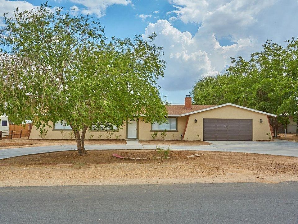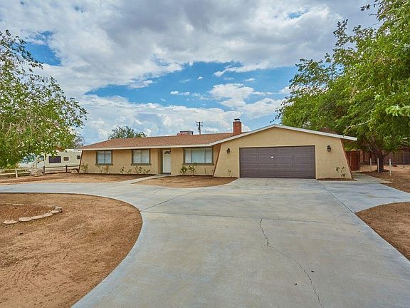 Seller Motivated!! Nicely remodeled home in Apple Valley. Located on a quiet street with mountain view. Home features: 3 bedrooms, 2 full bathrooms, 1469 square feet of living space, 2 car oversized attached garage, almost half acre lot completely fenced with side gate and rear entry gate. New Gorgeous wood laminate flooring in living room and hallway and tile in kitchen and bathroom. Pristine kitchen was remodeled with beautiful granite counter top, white cabinets,and stainless steel appliances. Fans, light fixtures and blinds throughout. Beautiful fireplace with tile work. Almost forgot Laundry room inside home not the garage. Master bedroom is huge with attached bathroom, and walk in closet. The hallway bathroom has tub and shower as well. Nice Circular driveway. Large yard can accommodate RV, boats and all sorts of toys. Detached workshop in the back yard with a built-in dog house. High 6 foot fencing around the back yard for privacy. This home is move in ready and awaiting it's new proud owner. MUST SEE!!