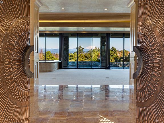 Contemporary 7,553sf Estate on 20 gated acres in Ridgefield w/3 mountain views. Single level, 3bed/4.5 bath, open plan w/floor-to-ceiling windows thru-out. Marble floors, light wood, copper & stone accents. Designed by award winning Steven Chase. Entertainers kitchen w/Butlers pantry connects to casual/formal dining rooms. Detached studio w/bath. Beautiful grounds with mature trees. Within 20/30 mins to PDX airport, Vancouver/Portland.