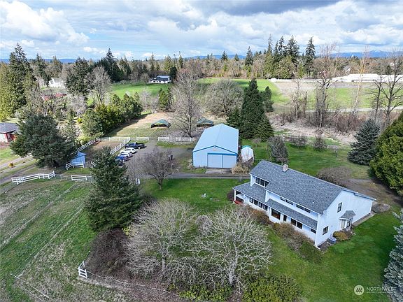 Prime Location! Close-in Ridgefield 5 ACRES with territorial views of the Oregon hills! Bring your horses and/or hobbies to this useable acreage with gated entrance, beautifully maintained 2 story home designed to bring in lots of natural light. Home features vaulted living room, French doors w/custom leaded glass, fireplace with wood stove, formal dining room, spacious kitchen with eating nook. Large primary bedroom includes a walk-in closet & bath. Well designed 84'x36' shop/barn with 4 matted stalls, heated tack room & loft for hay. Shop area has room for RV's, boats, enclosed workshop, 14' high sliding doors, concrete floors & new electrical panel. Pasture is cross fenced and has turnouts with shelters. Enjoy country life at it's Best!