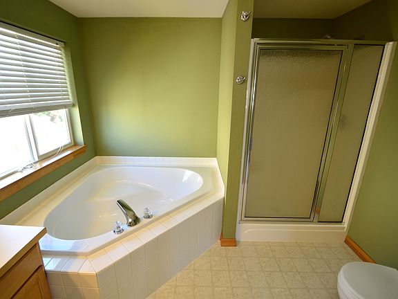 Very nice home with open kitchen with Tile counters and floors. Family room with corner gas fireplace also bedroom /office down. Large master suite with walk in closet and soaking tub. Fully fenced back yard with patio and Sunsetter roll out shade and dog run.