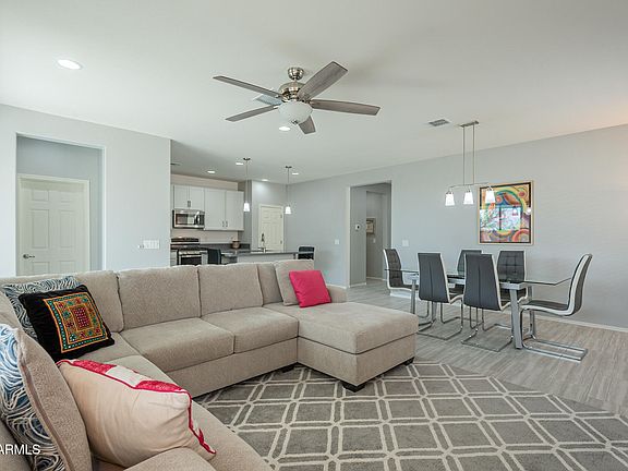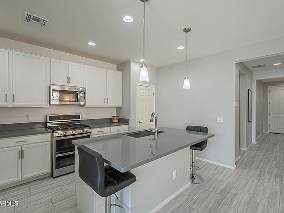 This immaculate home built in 2020 is move-in ready, and is located in the popular Verrado Community in Buckeye! Gourmet kitchen with granite countertops, upgraded stainless appliances, and plenty of white shaker cabinets. Split primary suite with walk-in closet also offers a spa-like bathroom, complete with a large vanity and dual sinks. Two more bedrooms plus a versatile den/flex room, oversized laundry room, and two car garage complete this home. You will be impressed with the tree lined streets, numerous parks, community pools, spa, fitness center, and fabulous clubhouse in this community, which is a great place to be home!