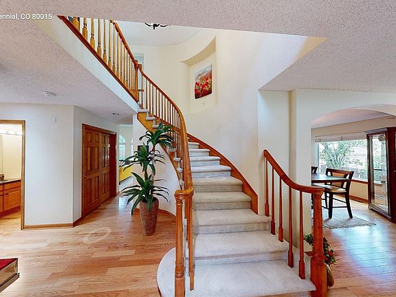 RLocation,Location,Location!!Remarkable two story home in Park View Terrace! This home showcases notable upgrades inside and out. A grand staircase and high ceilings welcome you in. The front family room seamlessly flows to the formal dining room and kitchen, both adorned with beautiful hardwood flooring and bay windows. The open concept kitchen showcases new stainless steel appliances, a plethora of cabinetry in addition to a walk-in pantry, and elegant granite countertops complemented by a stylish tile backsplash. Adjacent to the kitchen, find a charming table nook with backyard access. The living room boasts soaring double height ceilings with large windows and a Lehrer's gas fireplace accented by a brick surround with built-in shelving. Need a home office or an extra bedroom? The main floor study with dual closets can serve both purposes. Journey upstairs into the primary bedroom which includes a five piece ensuite bathroom with new doors, cherry cabinetry, and a spacious walk-in closet fitted with ample built-in shelves. Continue down the hall and find three additional bedrooms and an updated full bathroom. The unfinished basement provides ample room to grow in the future. The fully fenced backyard is the perfect oasis for outdoor enjoyment! This space is shaded by mature trees and flaunts lush greenery. The newer pergola covered stamped concrete patio is complemented by solar lights that create a magical ambiance. This property also offers a convenient 3-car garage for all your storage needs. Located in a established community and in the Cherry Creek School District! Enjoy quick access to E-470, Southlands Mall, King Soopers, Starbucks, and much more! Recent updates include newly painted fences, new washer and dryer, new blinds, smart sprinkler system!