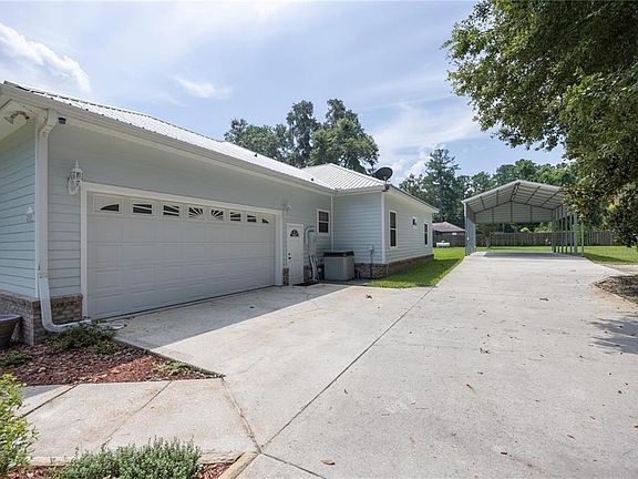 This is a rent to own opportunity! Working on improving credit but have a downpayment? Not an issue with owning this home! Inquire for details! Welcome to this exquisite 4-bedroom, 3-bath home nestled in the coveted Santa Fe Pass neighborhood next to Lake Santa Fe. Elegance and craftsmanship define this residence, boasting high ceilings adorned with crown moldings that add a touch of sophistication throughout. The heart of the home is a spacious great room, perfect for entertaining or relaxing by the fireplace, accented by natural light pouring in through expansive windows. The chef-inspired kitchen features updated kitchen aid appliances, ample cabinet space, corian countertops, breakfast bar, AND breakfast nook for casual dining. Adjacent to the kitchen, a formal dining room offers a refined space for hosting intimate dinners or festive gatherings. Down the hall, three additional bedrooms and two full baths provide ample accommodation, plush carpet flooring, and ample closet space. These additional bedrooms provide versatility for guests, a home office, or hobbies. Retreat to the expansive primary suite featuring a massive walk-in closet and an ensuite bathroom with a dual sink vanity, jacuzzi tub, and tiled stand-up shower. Step out onto the large covered patio ideal for enjoying morning coffee or evening breezes. Outside, revel in the beauty of an over 1-acre lot with a 4 zone irrigation system. Also, you'll find a 12x20 shed and a covered RV carport with both with 110-watt power hookups. Recent upgrades include a new 26-gauge metal roof installed in 2020 and stainless steel kitchen aid appliances. Enjoy access to Lake Santa Fe, one of the most sought-after lakes in FL. This 6000