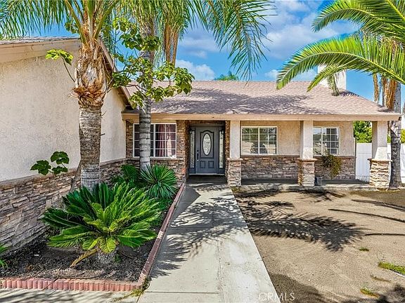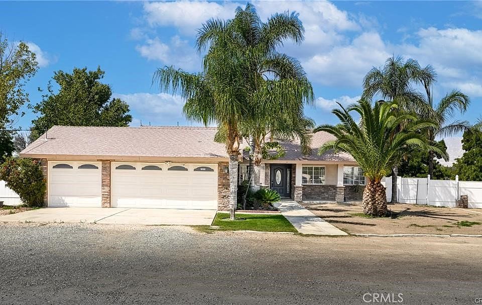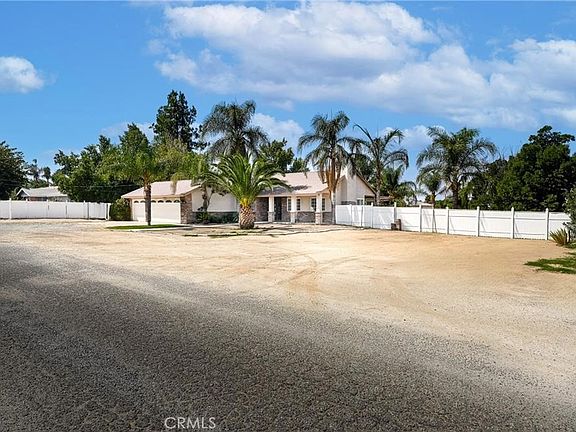 This expansive single-story ranch sits on just under 1 acre, offering privacy and a taste of rural life while still being connected to the community. The property includes a large in-ground pool and spa, a sizable covered patio for lounging. The mature queen palm trees and shrubs provide a park-like setting. This single-story 3 bedroom 2 bath home with a cozy fireplace and vaulted ceilings has plenty of room for family get togethers and for making new memories. An oversized 3 car garage provides plenty of space for vehicles and storage. Your family’s perfect home awaits in this charming and spacious ranch, designed for both everyday living and unforgettable gatherings. Some of my favorite details of the home are in the backyard specifically the huge palapa shade, the cement table and fire-pit next to the sparkling pool. R/V parking is available with hook ups. Many residents in this community enjoy the scenic views of the rocky and rolling hills and nearby mountains, particularly during sunrise and sunset. Nuevo is known for its schools and county living. Popular near by amenities include Lake Perris, Perris Auto Speedway, DropZone Waterpark and a short drive to Temecula’s wine country. Come see this beautiful home you won’t be disappointed.