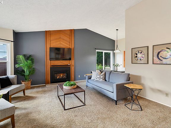 Nestled in a peaceful cul-de-sac, this updated one level home offers modern comfort and style. The kitchen features updated cabinets with pull-out drawers, tile backsplash, built-in convection microwave, engineered hardwood floors, recessed lights, and a garden window. Enjoy cozy evenings by the gas fireplace (installed in 2017) in the living room. The primary bedroom boasts a remodeled suite with granite countertops, tile backsplash, plumbed for two sinks, and a walk-in closet. Additional updates and/or features: 2018 exterior paint, 2020 a new roof, 2017 installed a 96% efficient Lennox gas furnace, 2011 air conditioner, large fenced yard, and in 2019 an 8x14 outdoor shed for yard tools and extra storage space. With 3 bedrooms, 2 bathrooms, and 1400 square feet of living space, this home is a perfect blend of convenience and comfort. 2008 an Energy Trust Weatherization including vinyl windows for additional savings. Schedule a showing today! See Attached list of "Updates & Features".