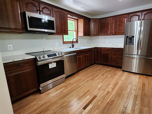 Completely renovated! New 2-1/4" inch red oak hardwood floors in the living room, kitchen, dining room and hallway. Plush carpet in bedrooms. Kitchen has new Quartz Calacatta countertops. Kitchen has new Samsung stainless steel appliances: French door refrigerator with icemaker and water dispenser. Electric slide in range, over the range built in microwave, quiet Samsung dishwasher. New ceramic tile in bathrooms Nre bathroom vanities. . All new light fixtures throughout. New vinyl plank wood flooring on lower level. Fresh paint. All new plumbing fixtures throughout. 2 patios. The 2.39 acre lot backs up to creek,mountain views.
