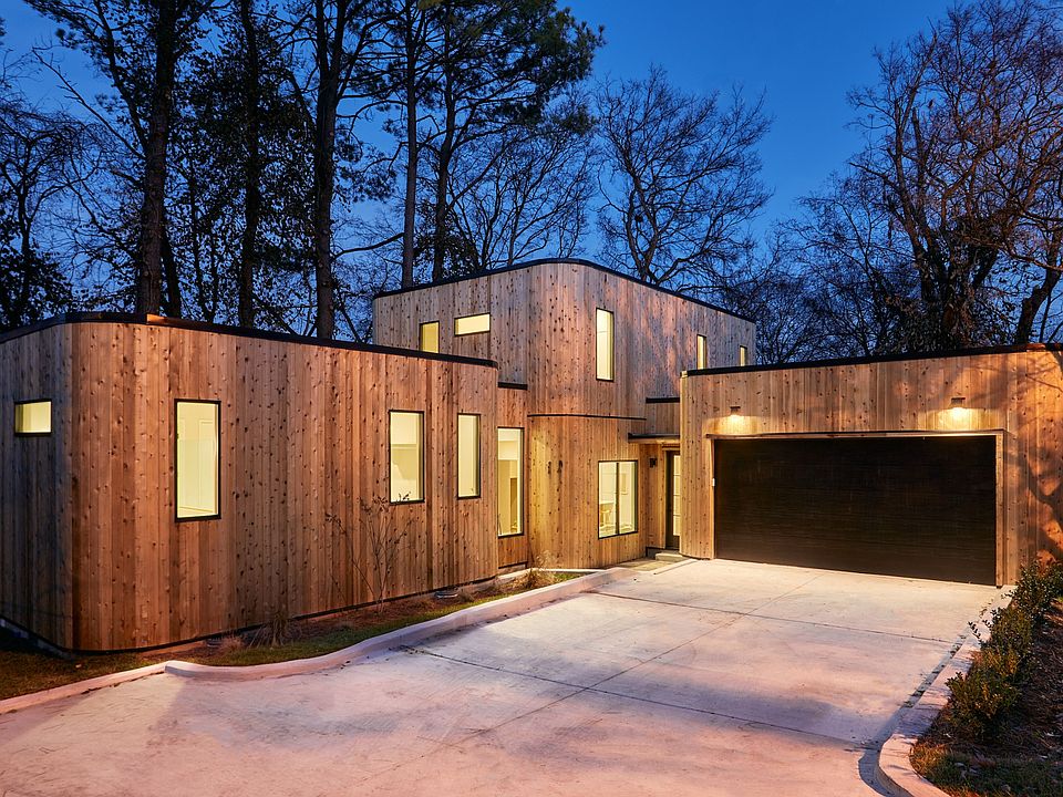 ONE OF A KIND modern construction designed by architect Ryan Thewes and built by Black Chandelier Properties. Rounded corners on these 3 connected "pods" are like nothing on the market. One pod is the 2 car garage, another pod is the almost 600ft2 primary suite, and these 2 pods are connected by breezeways to the third and largest pod which features the main living/kitchen/dining area a second floor that has 2 beds/2baths and additional living space. High ceilings, lots of light, large rooms, very private setting. OPEN HOUSE SUN 12/11 from 2-4!