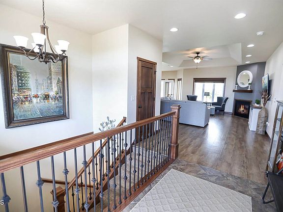 This immaculate, centrally located home on a corner lot has everything and more. You can tell the quality the moment you arrive at the beautiful stone front porch. Upon entering the spacious entry, you are greeted with an open concept living area complete with gas fireplace and high tray ceiling. There is lots of natural light the floods in through the back windows and patio doors which leads out onto a beautiful yard and stamped concrete patio complete with firepit. The gorgeous landscaping comes with drip line throughout all the trees and perennials. Back inside you have a lovely dining room that looks onto the back yard, and also a very inviting kitchen with lots of counter space, that is perfect for entertaining. The large island can accommodate a host of people and the corner pantry is a welcome addition to any kitchen. Off the kitchen you will find a laundry room which is also connected to the huge 3 stall garage. The garage is a must see as it boasts tall ceilings, floor drain and gas heater. The main floor also has a guest bedroom with full bathroom and also hosts the primary suite which is a showstopper. The tall, tray ceiling and beautiful en suite with double sinks, tiled shower and large closet makes this a dream for anyone and everyone!As you head down stairs you are greeted by a very spacious family room complete with built in wet bar which is perfect for entertaining. There are 2 large bedrooms and 1 additional full bathroom. The house is also wired and prepped for a whole home generator should you choose to install one. There are so many wonderful things about this home that you won't want to miss it.
