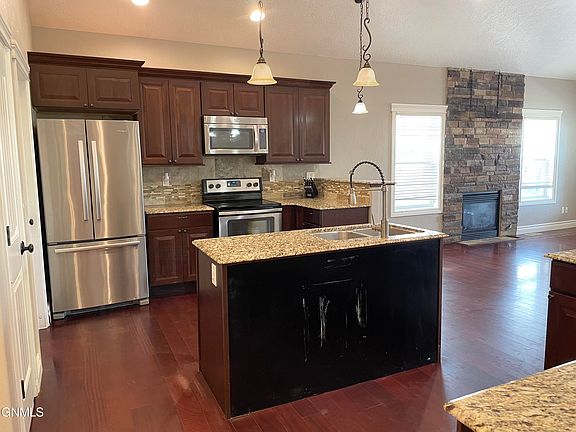As you step into the entrance, you'll notice the high vaulted ceilings that create an open and airy atmosphere throughout the home. The layout effortlessly connects different living spaces, making it easy to entertain and spend time together. The living room has a cozy fireplace to keep warm in the colder months.