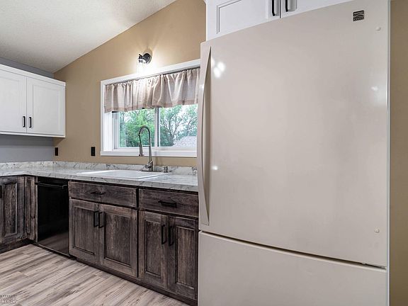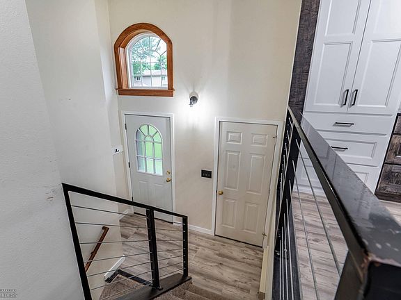 Welcome home to a space that feels just right—open, updated, and filled with natural light. The nearly brand-new kitchen was installed within the last month, featuring fresh cabinetry, countertops, and an open flow into the vaulted ceiling living and dining areas. A sleek cable railing accents the stairwell, adding a modern touch that fits right in. New flooring across much of the main floor and fresh paint in key areas make the home feel crisp and move-in ready. Both bathrooms offer modern comfort with updated vanities, tile, and stylish finishes. Step outside to an oversized, fully fenced yard with two storage sheds and no backyard neighbors—offering privacy and room to enjoy. The heated, attached garage includes a finished floor for added convenience. Nestled in a quiet, established neighborhood with mature trees and a nearby park, this home brings together space, style, and location.