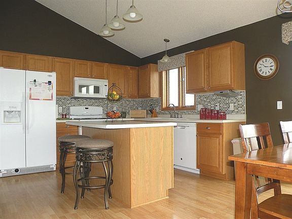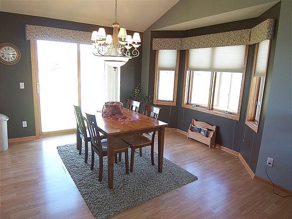 Lester Prairie 5 bedroom split entry home features open floor plan, vaulted ceilings, center island kitchen, full master bath and walk in closet, family room with bar, walkout lower level to patio. Large private bark yard and 3 car attached garage. Home Warranty Plan included.