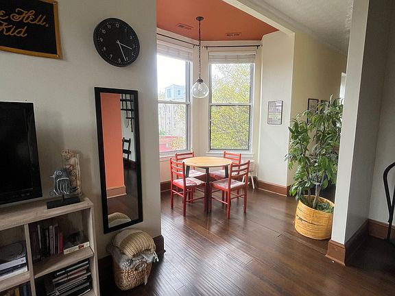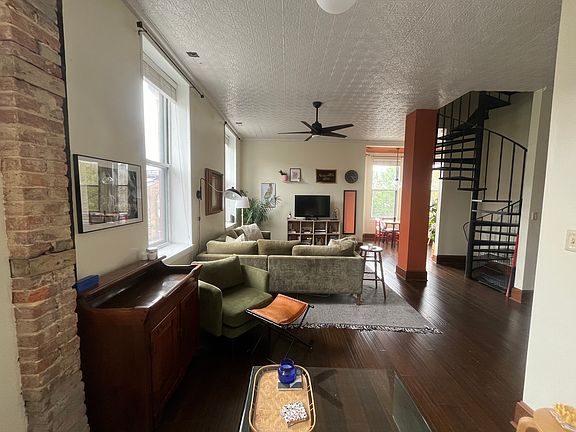 This place is oozing with charm! From the 12' tall tin ceilings, exposed plaster and brick, functional fireplace, spiral stair, all in a historic mansion! Since the unit is the top two floors of the mansion, your entry is off the street, giving a second layer of security so you can feel safe at home. After walking upstairs from the front entry to the mansion, you will find private landing outside your unit, where you can store jackets and shoes. You enter into the spacious, continuous living area. To the left is the functional fireplace! Continuing around the central core of the unit, where the spiral stair case is, you can see the spacious kitchen with full size appliances and butcher block counters. Tucked between the kitchen and entry is a spectacular half bathroom with bold wallpaper and marble mosaic floors. Up the central spiral stair, you land on the cork floor of the second level landing that houses the in unit washer and dryer. On the right is the primary bedroom, with ample closet space. There is an updated ensuite restroom with tub shower. Back out on the landing to the left is the second bedroom. This room has a full size murphy bed that is able to be folded up for even more space! This room also has a closet, the linen closet, as well as an ensuite bathroom with shower tub. There are incredible views from all the windows upstairs. New HVAC installed in Fall 2023! Can be rented furnished (as seen in photographs) for additional fee. Please inquire if interested! Owner pays water, tennant responsible for all other utilities. Up to 1 dog allowed. No smoking inside. Non-permit street parking readily available.