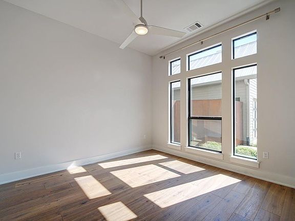 Pristine soft contemporary design in this 3-bedroom, 3-full bath East Austin townhome, minutes from city parks, bike paths, Mueller, downtown, University of Texas, and countless Austin eateries and hot spots. High ceilings throughout. Wide plank white oak flooring throughout main living areas and bedrooms (no carpet). Wide-open kitchen/living/dining area with 10 ft ceilings. Kitchen includes extensive shaker style custom cabinetry, 36-inch Bertazzoni gas range and venthood, French door Bosch refrigerator (included in lease), Bosch dishwasher, Danby wine fridge, and Sharp under-counter microwave. Quartz counters and designer tile backsplash. Expansive eat-in island. Walk-in pantry. 2nd floor owner's suite with vaulted ceilings, treetop views and glimpses of Austin's downtown skyline. Owner's bath includes dual vanities, walk-in shower, and walk in closet. One car garage with glass panel door and automatic opener plus one reserved outdoor parking space adjacent to the home. Private fully-fenced back yard with covered patio and in-ground automatic irrigation. Outdoor entertainment area with steel planters and string lights, perfect for grilling. Ring video doorbell + Nest thermostats. Energy-efficient 2017 construction with stucco/hardy exterior and steel roof. Tankless on-demand water heater. Electrolux washer and gas dryer included in lease. Wonderful neighbors and community. Zoned for Maplewood Elementary. Multiple applications received. Deadline to submit Sunday 6/20 @ 7 PM CST. Pets negotiable. No smoking. 1 car garage + one reserved space next to unit. All appliances including refrigerator, washer, dryer included in lease.