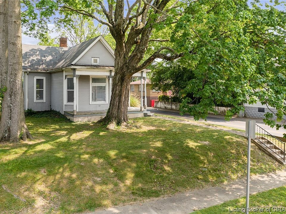Welcome home to this classic turn of the century house located in the heart of New Albany with a neighborhood/city feel. All of the natural light streaming into this home will make it your "happy place"! The home shines with original hardwood floors and tall ceilings. Don't miss the built in shelf in the kitchen and original features that give this home its charm and character. The front porch not only adds beauty to the home, but a great space to enjoy the outdoors! The garage provides an additional storage area. Sellers welcome inspections, but home is being sold "as is".