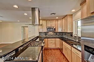 Completely Remodeled 3 bed, 2 bath home nestled in a quiet neighborhood features a split floor plan with plenty of living space (1872 sf). Living area is open to dining & kitchen which features stainless steel appliances, granite counters and awesome multicolored back splash. Master bedroom boasts huge his and her walk-in closets plus private bath with double sinks, separate tub and beautifully tiled stand up shower. Detached 2 car garage comes with a separate room with its own AC unit, providing a perfect set up for an office, art studio or workshop. Tucked away on a large, private, expansive end lot in desirable 85016. Home is minutes from 51 & 202 freeway, Biltmore and downtown.