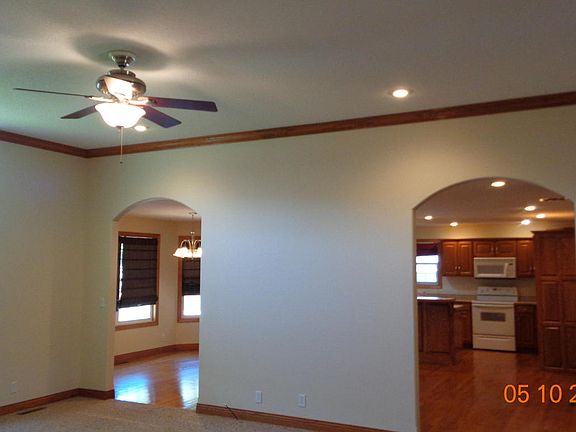 Hearth room has hardwood floors. Master suite offers garden tub, walk-in shower and double walk-in closets. Like-new carpet & paint., 10 ft. ceilings, crown molding and bullnose corers. Covered patio. New in 2014--deck, lighted storm shelter (transferrable lifetime guarantee) with lithium battery lights. Triple garage, attic stairs/storage. Crawl space equipped with sump pump. Pet door in place for Fido to get to the privacy fenced back yard.